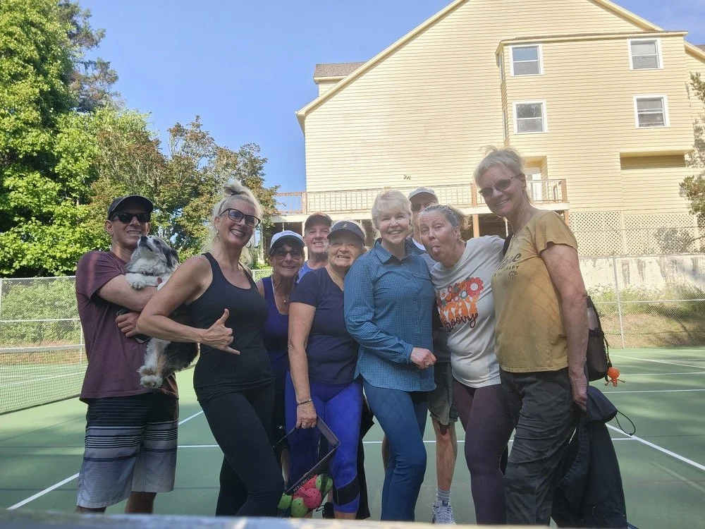 We are a friendly, fun pickleball group. We love having visitors join us! All skill levels are welcome. Click on the links in the navigation bar at the top of this page to find out how to join in, either as a member, or just for a day or two!